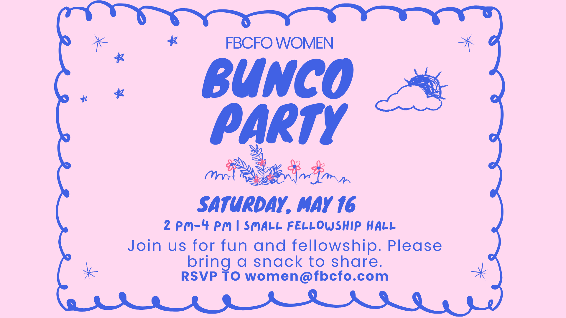 Mission: The Fair Oaks Women's ministry is committed to providing Bible studies, fellowship events, and service opportunities for women to live out their faith in a Christ-centered community so they may grow in unity in Christ and bring glory to God.