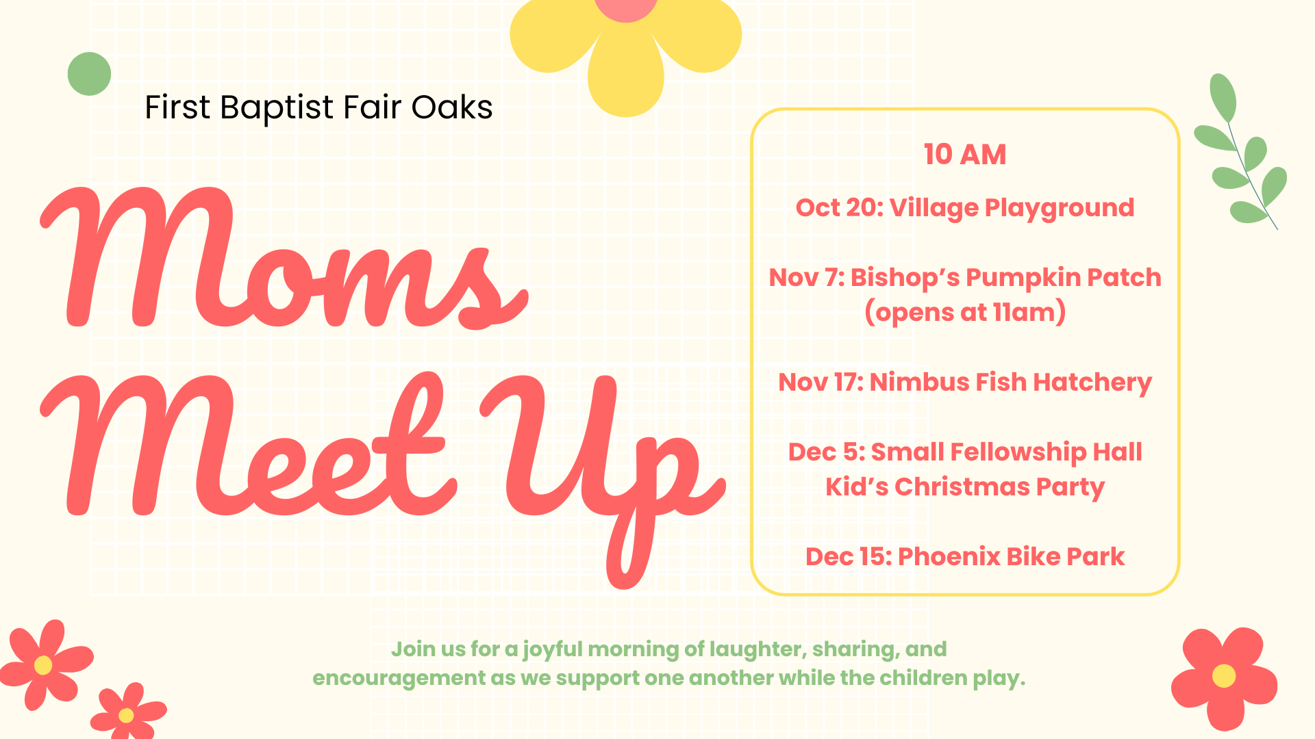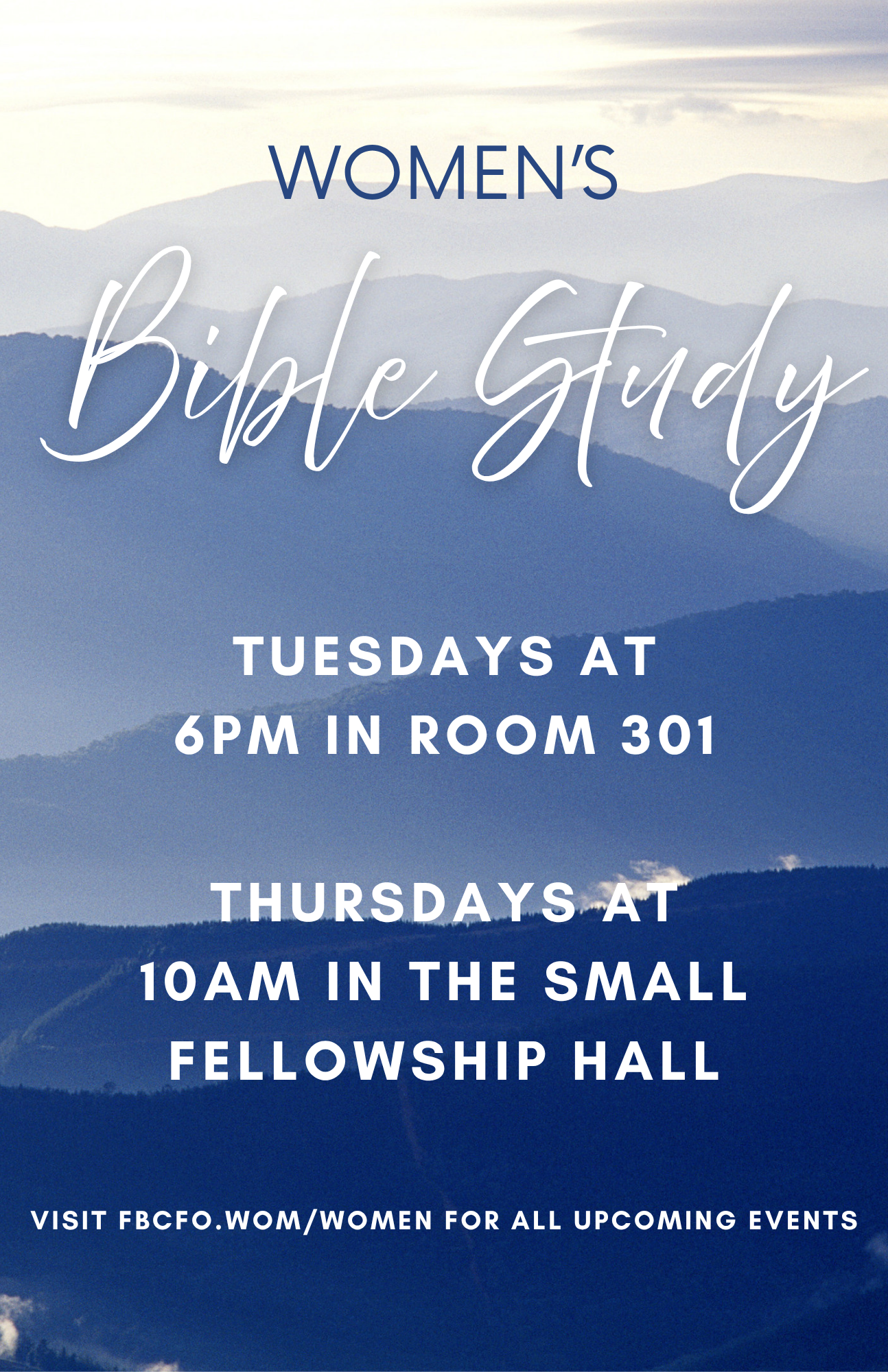 Mission: The Fair Oaks Women's ministry is committed to providing Bible studies, fellowship events, and service opportunities for women to live out their faith in a Christ-centered community so they may grow in unity in Christ and bring glory to God.